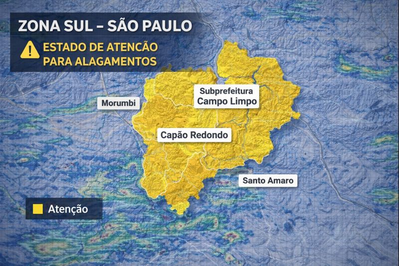 A cidade de São Paulo foi colocada em estado de atenção para alagamentos em 27 de janeiro de 2026, após o registro de chuva forte em áreas da Zona Sul. O aviso foi divulgado pelo Centro de Gerenciamento de Emergências Climáticas e pela Defesa Civil de São Paulo, com menção a risco de transbordamento no Capão Redondo, na área da Campo Limpo.